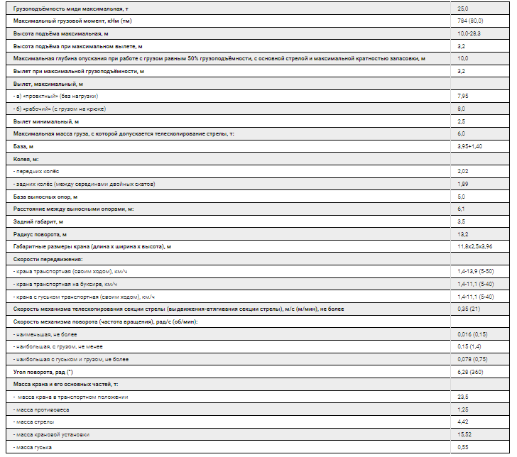 Гарантийный срок эксплуатации крана — 18 месяцев или 1 000 моточасов наработки в крановом режиме с момента передачи крана потребителю. Срок службы крана при 1,5-сменной работе в паспортном режиме составляет 10 лет. Каждый кран укомплектован индивидуальным комплектом ЗИП на базовое шасси и на крановую установку.