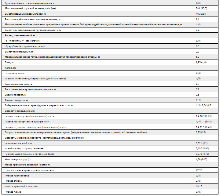 Трехсекционная телескопическая стрела длиной 10,0-24,0 м во втянутом положении обеспечивает крану компактность и маневренность при переездах, а в выдвинутом - обширную рабочую зону и большую высоту перемещения груза при работе. Все секции стрелы сделаны из двух гнутых цельнометаллических "корытообразных" профилей. Для их изготовления применяется высокопрочная сталь импортного производства. Все это в совокупности позволило существенно снизить общую массу удлиненной стрелы, повысив при этом ее прочностные показатели. Возможность телескопирования стрелы с грузом на крюке позволяет крану выполнять специальные задания: устанавливать грузы в труднодоступных местах,проносить их среди смонтированных конструкций. Для удобства работы в стесненных условиях предусмотрен режим работы с грузами с установкой крана на опоры при втянутых балках выносных опор.